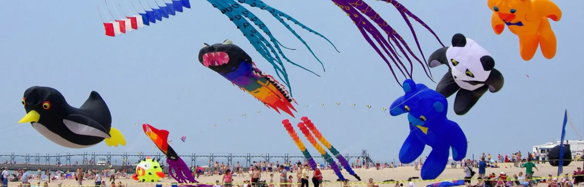 Enjoy a day at the beach as the sky is filled with colorful kites of all types and sizes. World-famous stunt kite fliers perform to music on the center flying field while kites larger than a school bus hover just to the south. Bring your own kite to fly on the open flying field at the north end of the event, or test fly the year’s newest kites on one of the manufacturers’ fields.