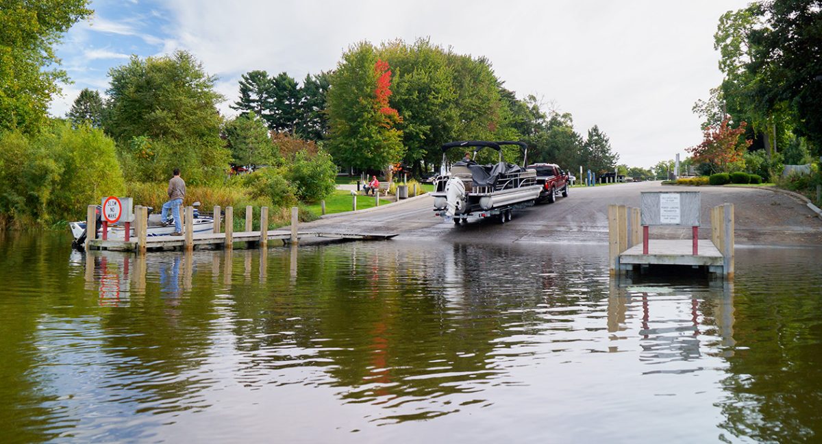 Boat launch with 4 areas for launching, a restroom and parking area. Permit required to launch. ...