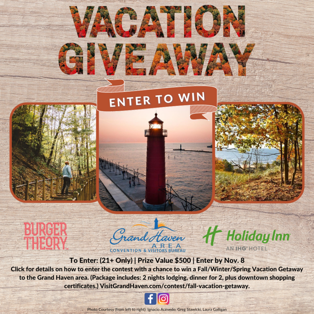 Winner will be selected randomly from entries that meet the above requirements. Winner of the Fall Vacation Giveaway will be posted on the VisitGrandHaven Facebook and Instagram accounts on Friday, November 13, 2020.