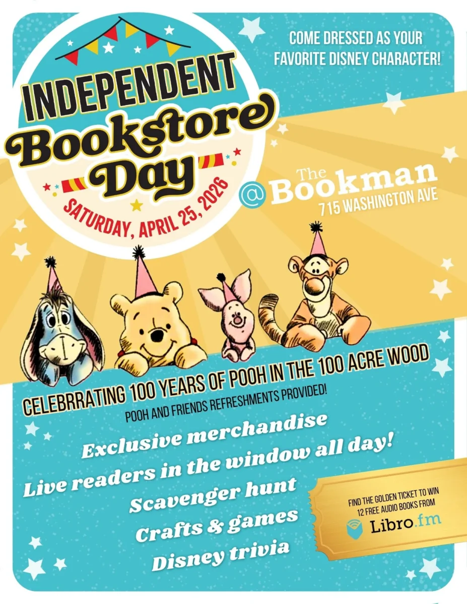 Come Celebrate 100 Years of Pooh in the 100 Acre Wood for Independent Bookstore Day (IBD). There will be fun Winnie the Pooh Activities all day! Come dressed as your favorite Disney Character and enjoy crafts, games, a scavenger hunt, Disney trivia, snacks and drinks. There will be live readers in The Bookman window reading all day long. There will be exclusive IBD merchandise and if you find the hidden Golden Ticket in the store you win 12 free audio books from Libro.fm!