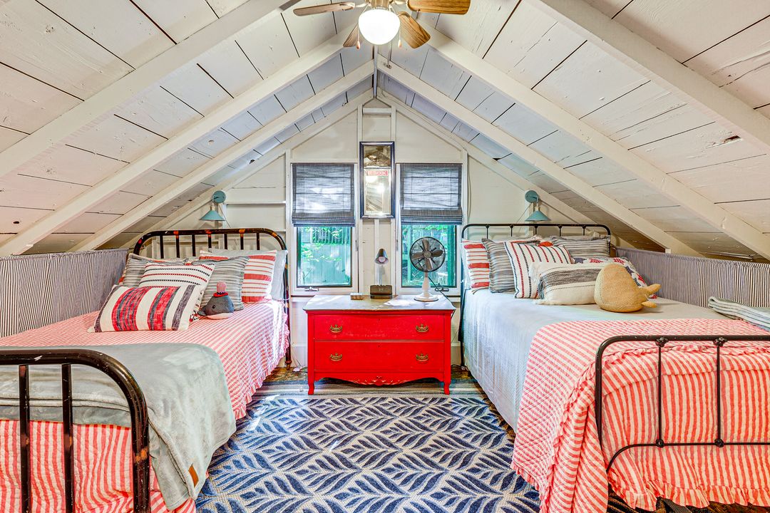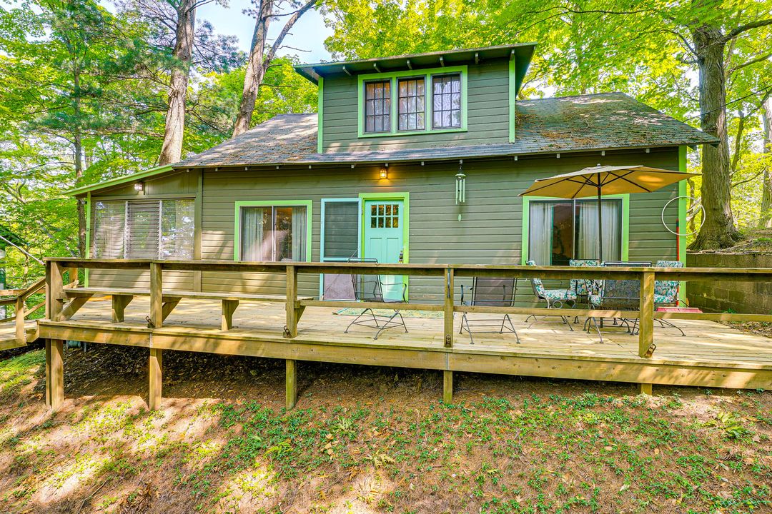 Inspired by the Michigan summers of a bygone era, this 5-bed, 1-bath vacation rental cabin teems with memories of well-spent vacations. Add yours to the mix amid vintage charms like exposed brick, delicate florals, and antique decor — all within 1 mile of Lake Michigan and Downtown Grand Haven. Here, you can walk to Grand Haven City Beach or drive to the festivals, breweries, and museums minutes away. End each adventure back home on the deck, surrounded by loved ones and luscious greenery.