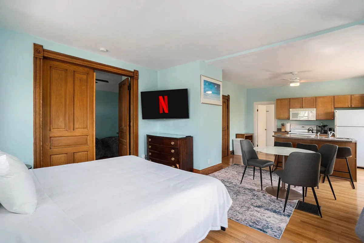 Step into a slice of Grand Haven’s history at Franklin Manor, a beautifully preserved Victorian-style home divided into five thoughtfully appointed units. With its ornate exterior and timeless architecture, this historic residence offers guests a unique blend of old-world elegance and modern comfort.
