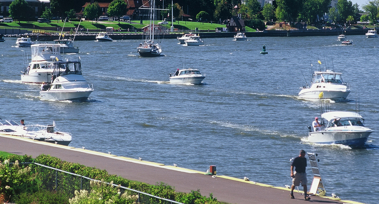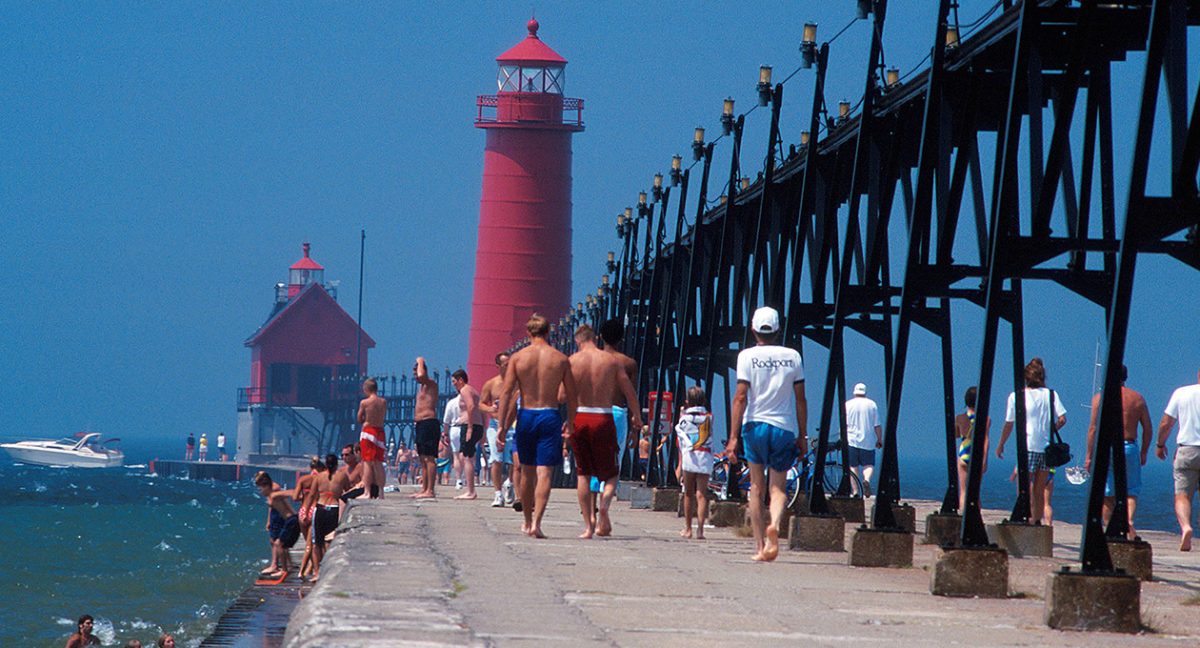 1.5 mile long stretch of paved path along the Grand River harbor starting with the shops at Chinook Pier. Along the way restaurants, marinas, charter fishing boats, and parks culminating at the catwalk, pier and lighthouse. The Boardwalk conveniently intersects with the downtown shops and restaurants. While it's a great place for a brisk walk, there are plenty of grassy knolls and benches for idlers who prefer people and boat watching.