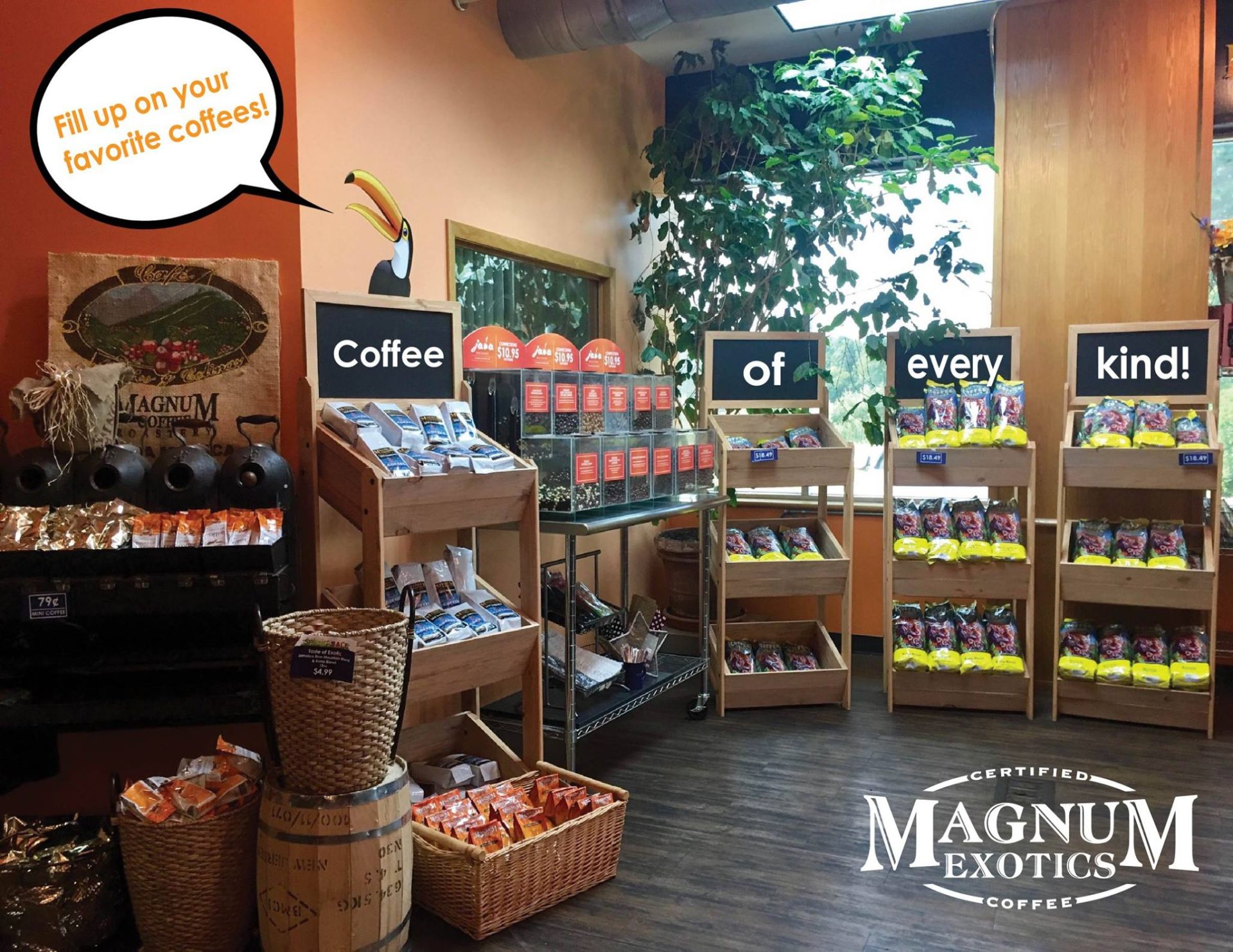 Java Boulevard also known as "Magnum Coffee House" stocks their own freshly roasted, greatest gourmet coffee in the world, in bulk bins and in prepackaged bags. Magnum also offers a full-service coffee bar complete with drive-thru window!