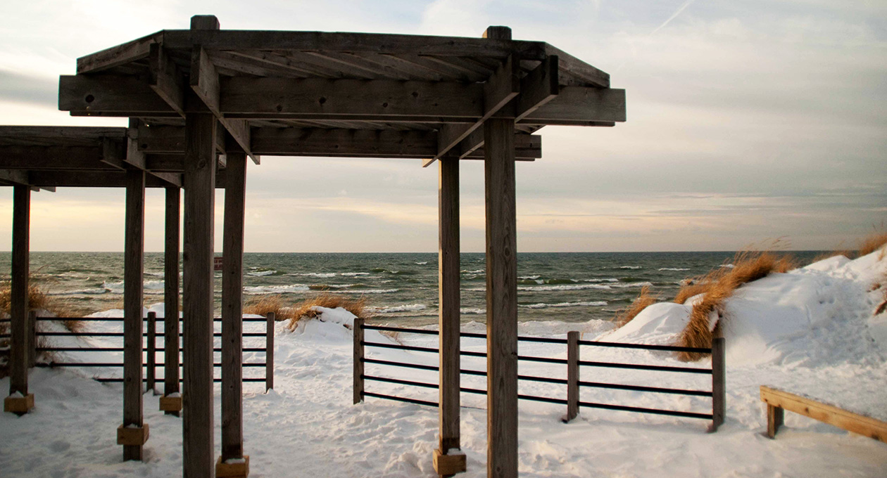 * Barrier free facilities include picnic shelter, restrooms, some picnic tables and grills and a trail to the Lake Michigan overlook deck.