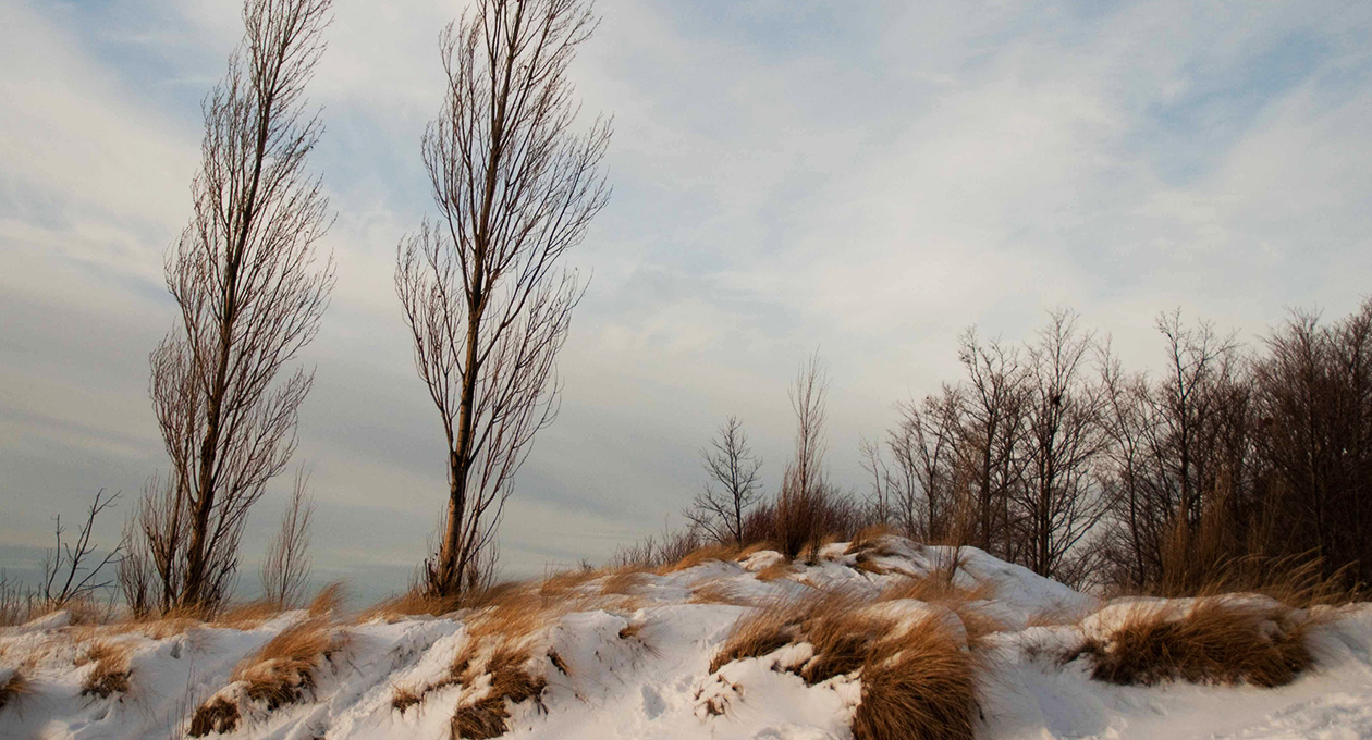 Kirk Park features acres of dunes, woods, a Lake Michigan shoreline with a sandy beach, covered pavilion, playground, swimming beach, hiking trails with scenic dune overlooks, and cross-country ski trails.