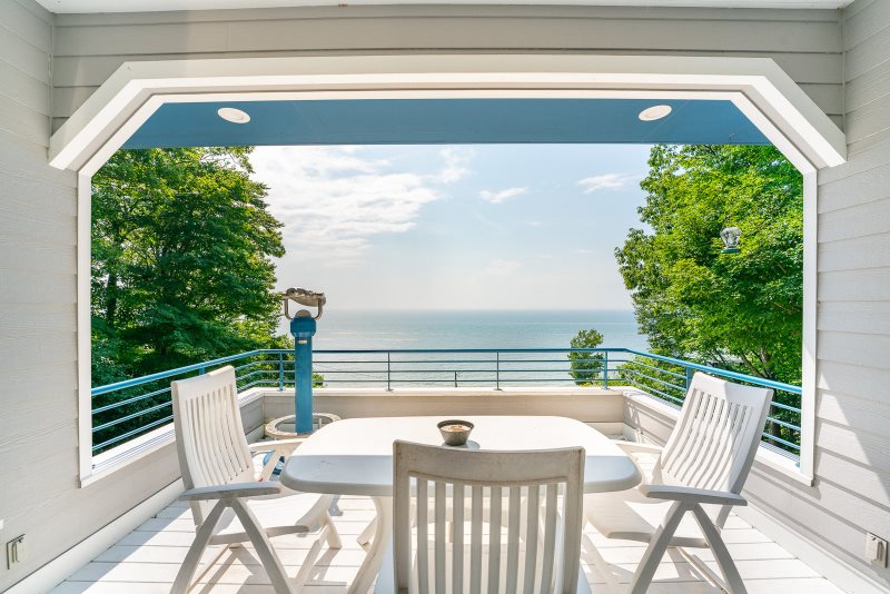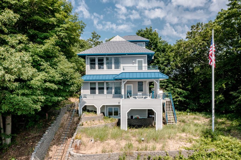 NEW FOR 2021! This beautiful newly listed vacation rental is the perfect spot for your family vacation! This home sits up on a hill and has the most amazing views of Lake Michigan. With modern amenities and spacious floorplan this house is a true one of a kind! The home features a working tram to get you up to the property and there is stairs to get you down to the beach!