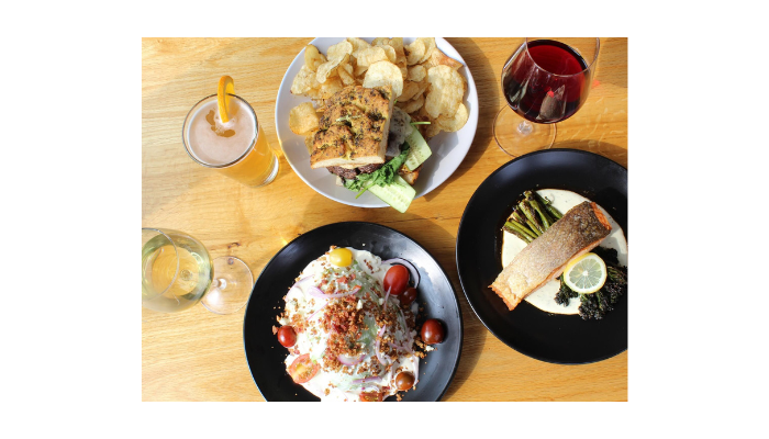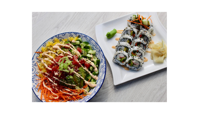 The venue offers two distinct experiences under one roof. Upstairs at Jellies, guests can enjoy frozen drinks, colorful sushi rolls, and a relaxed Tiki bar atmosphere. Downstairs, the main dining room and riverside patio provide a more laid-back setting, ideal for leisurely lunches, romantic dinners, and special celebrations!