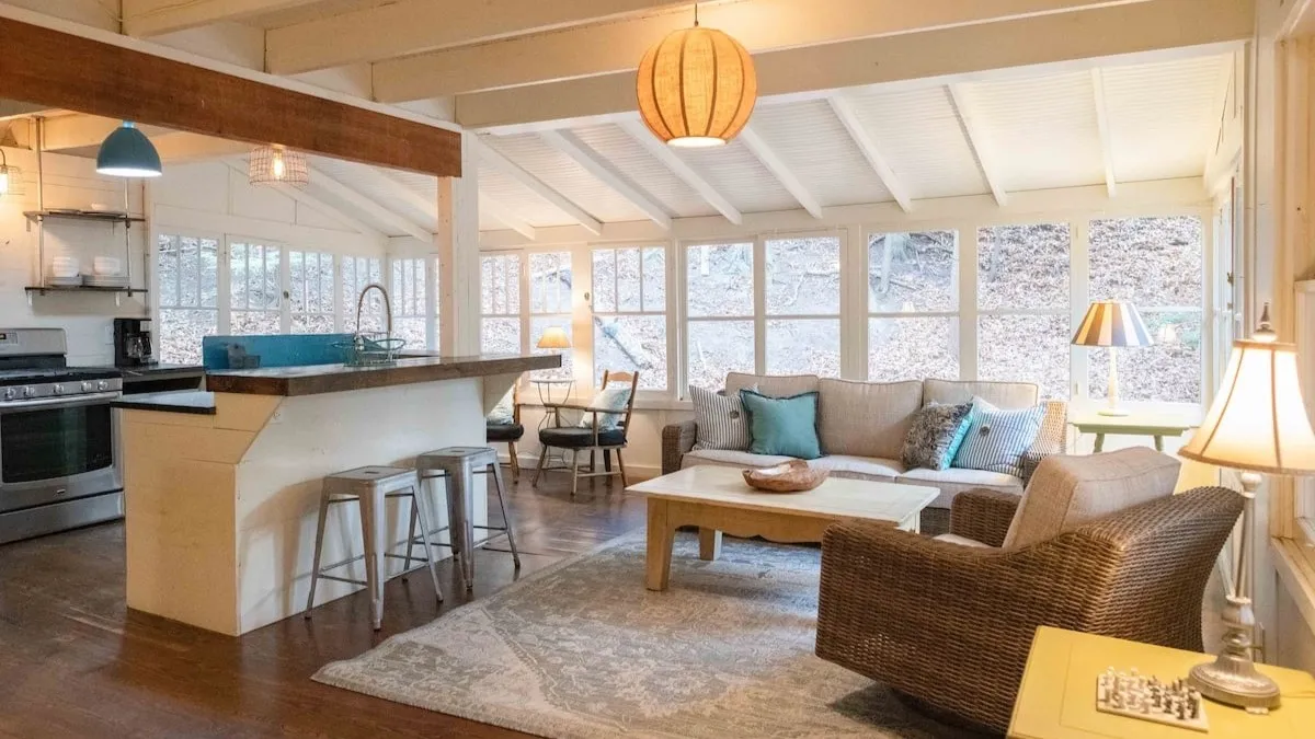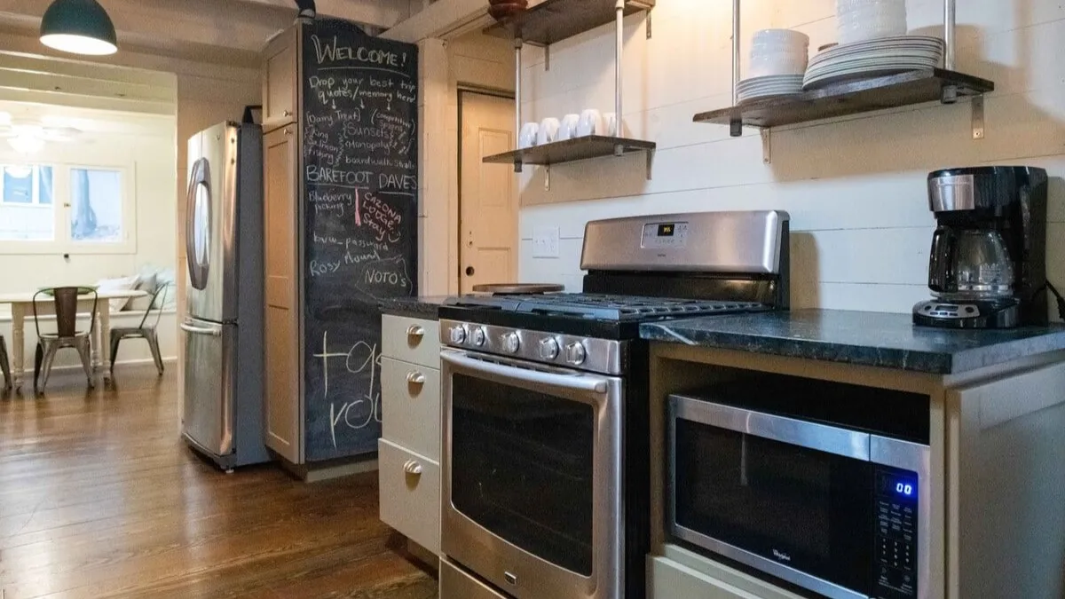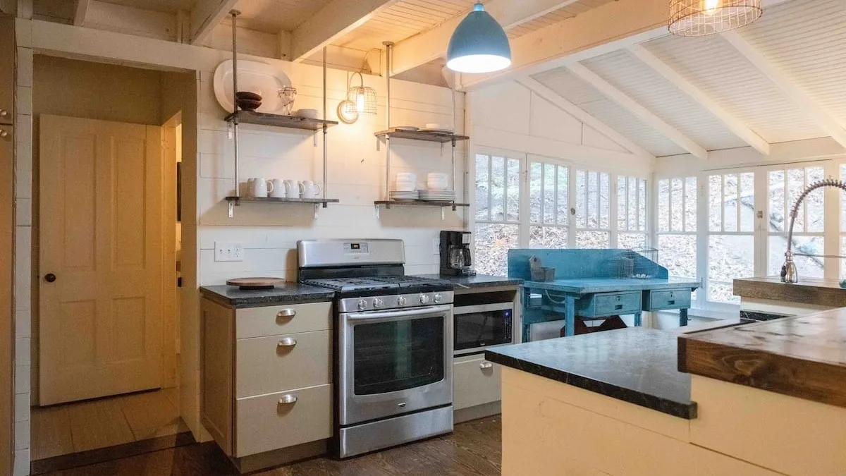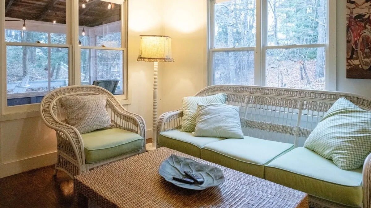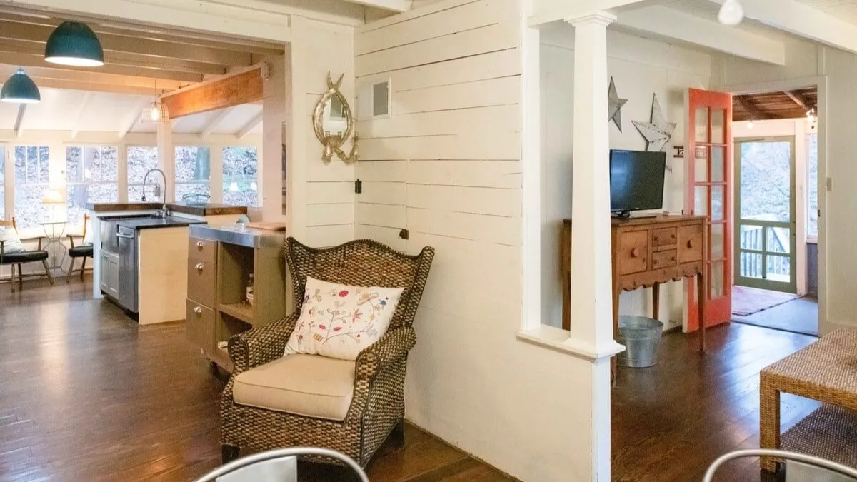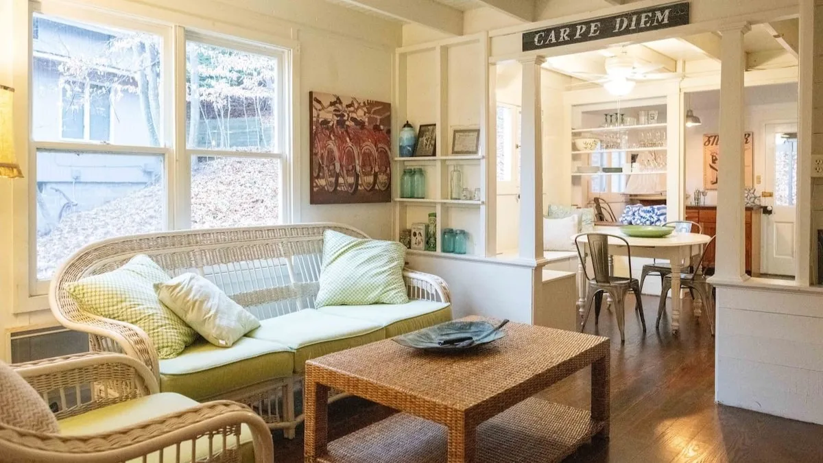 Industrial inspired kitchen features soapstone counters, farmhouse sink, stainless appliances and gas range. Enjoy dinners on the spacious screened porch or cozy built in dining area with wetbar. Enjoy grilling out on the back porch with wooded views. Spread out in not one but 2 separate living spaces. Full bath with walk in shower and additional bath with claw foot tub and a laundry room complete this floor. Four bedrooms and a half bath are upstairs.