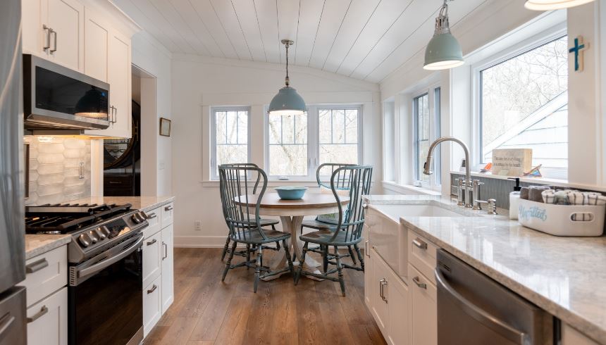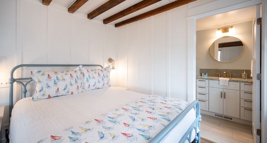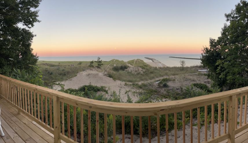 Dune Crest: A completely renovated four-bedroom, 2.5-bath lake cottage on Lake Michigan, offering private beach access and stunning views. Just steps from the shoreline, it features upscale beachside décor and a beautifully outfitted kitchen with a breakfast nook, granite countertops, and stainless appliances. The sand room off the kitchen provides easy beach equipment storage and direct access to the lakefront deck. The spacious living area includes a nautical wine bar and window seat, while the front porch offers seating and dining areas with lake views. Upstairs, three bedrooms provide comfortable accommodations. The property also includes access to community amenities like pickleball, tennis, and sunset gatherings.