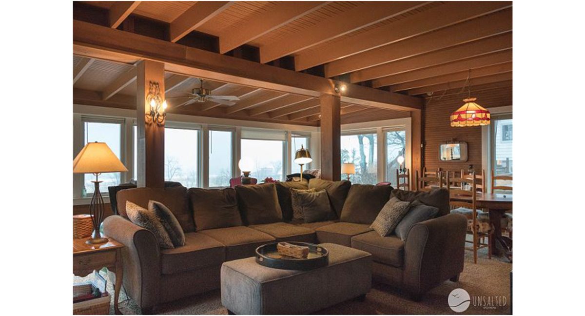 The house features 5 bedrooms, 2 full bathrooms, a fully equipped kitchen, and a spacious living room and dining area. Enjoy the expansive view of Lake Michigan through the large windows. The kitchen has pots and pans, dishes, cooking utensils, and all standard appliances. There is a TV in the living room with cable, and internet is provided as well. In addition, there is a stackable washer or dryer in-unit.