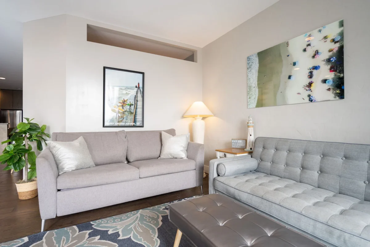 You will love this spacious downtown condo that is right across the famous Grand Haven Musical Fountain and boardwalk.