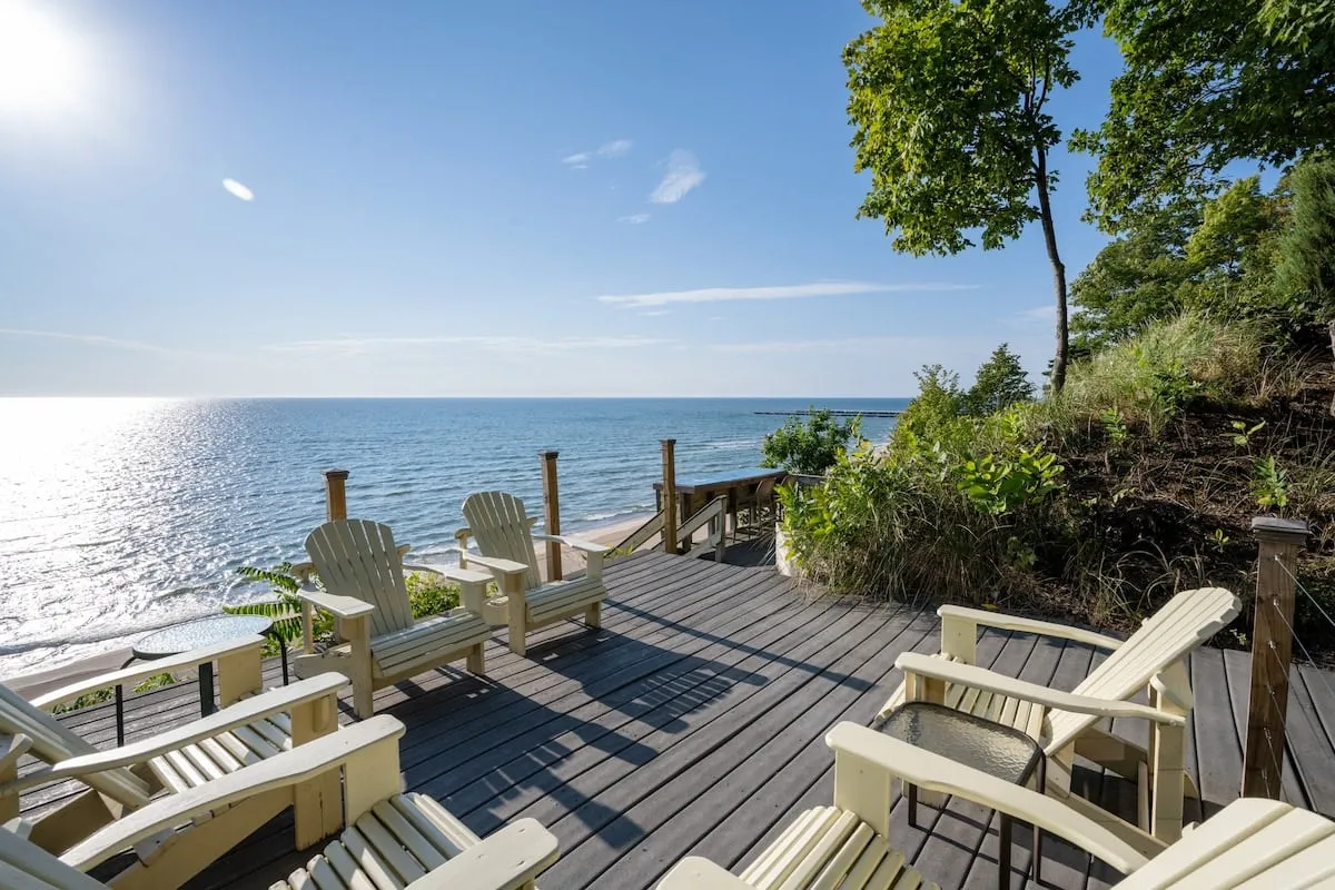 Welcome to Sandy Shores Lookout. Perched over a stunning slice of Lake Michigan shoreline the views don't get any better than this! Designed to feature unlimited access to a private beachfront, this cottage offers four separate decks and just 80 steps for days enjoying the clear waters and sandy beaches of Lake Michigan and the freedom to wander along the shoreline in both directions.