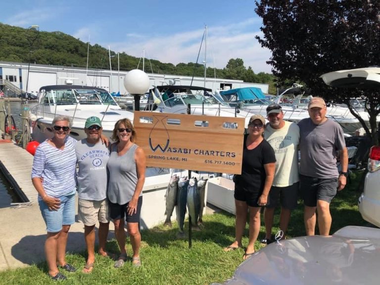Wasabi is a Tiara 3300 Open, well designed for the hard core trolling fisherman with the creature comforts of a pleasure boat cruiser for the whole family to enjoy. She has a large back deck and deep gunwales offering an excellent, stable fishing platform. With a 12’6” wide beam and deep Vee hull, she handles typical wind, waves, and weather on Lake Michigan without cause for concern for those welcomed on board with less experience. All fishing tackle and equipment is provided on board. Aboard the Wasabi, your safety and enjoyment are our number one concern. Wasabi Charters takes pride in maintaining a healthy compliment of USCG approved safety equipment.