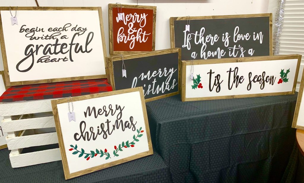 These hand-painted signs are the perfect gift for someone who loves hosting holiday parties. These make for great wall art and end table decoration, or even throw one of the smaller ones into a Holiday basket!