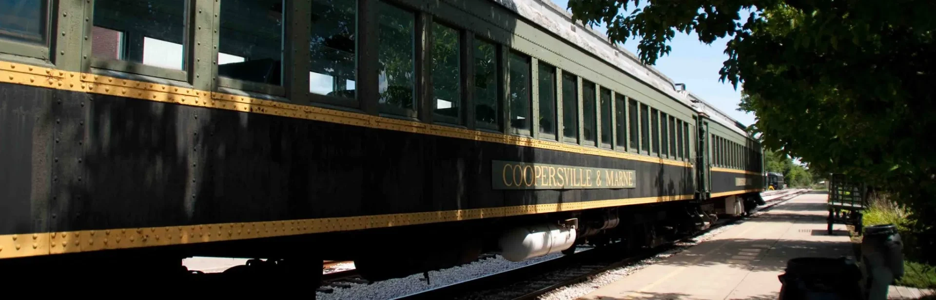 The Coopersville & Marne Railway, with its antique passenger cars dating to the early part of the last century, goes out into the countryside and through family-owned farmlands. You will cross over an open-deck girder bridge, four creeks and one road bridge before you arrive at the Village of Marne. The 1950s-era diesel locomotive then uncouples from the train, runs along a passing siding next to your passenger car, couples onto the west end of the train and pulls the train back to the City of Coopersville.